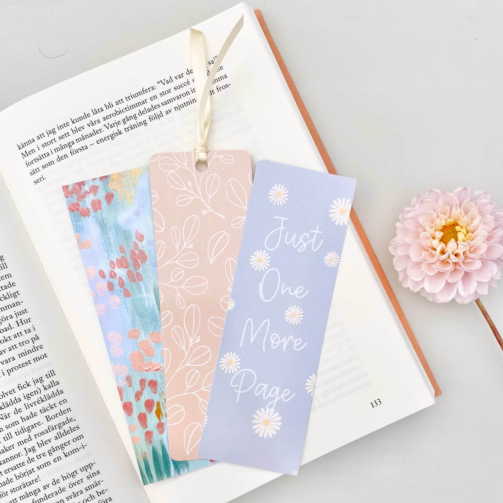 Har du någonsin önskat att din bok kunde berätta en historia bara genom dess bokmärke? Vårt Just One More Page är inte bara ett praktiskt tillbehör, det är en konstnärlig skapelse som förhöjer varje sida du vänder.