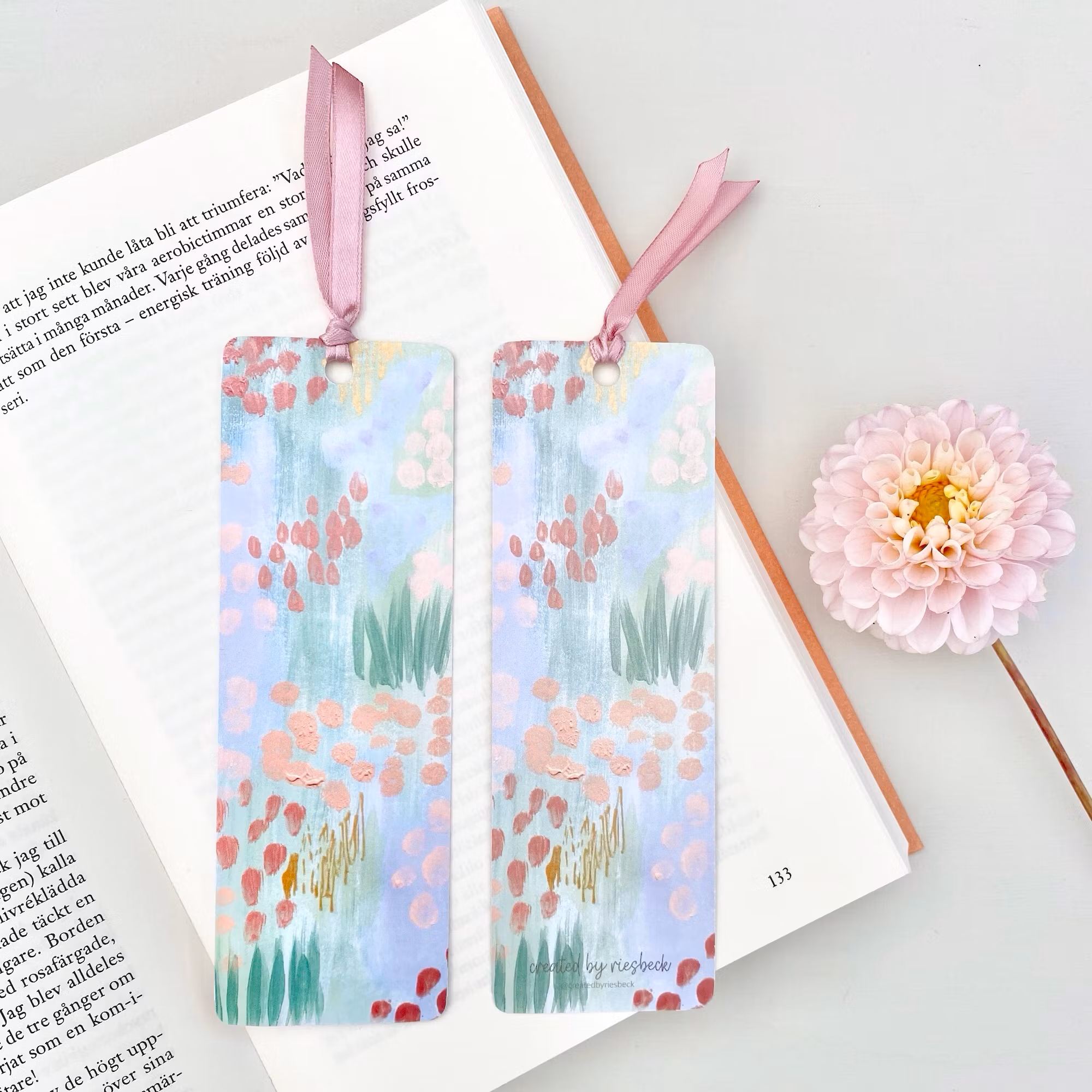 Unik Design: Varje bokmärke är unikt illustrerat med akrylfärger, vilket gör varje exemplar till ett konstverk i sig. Inspirationen från naturens ängar ger en fridfull och inspirerande känsla.