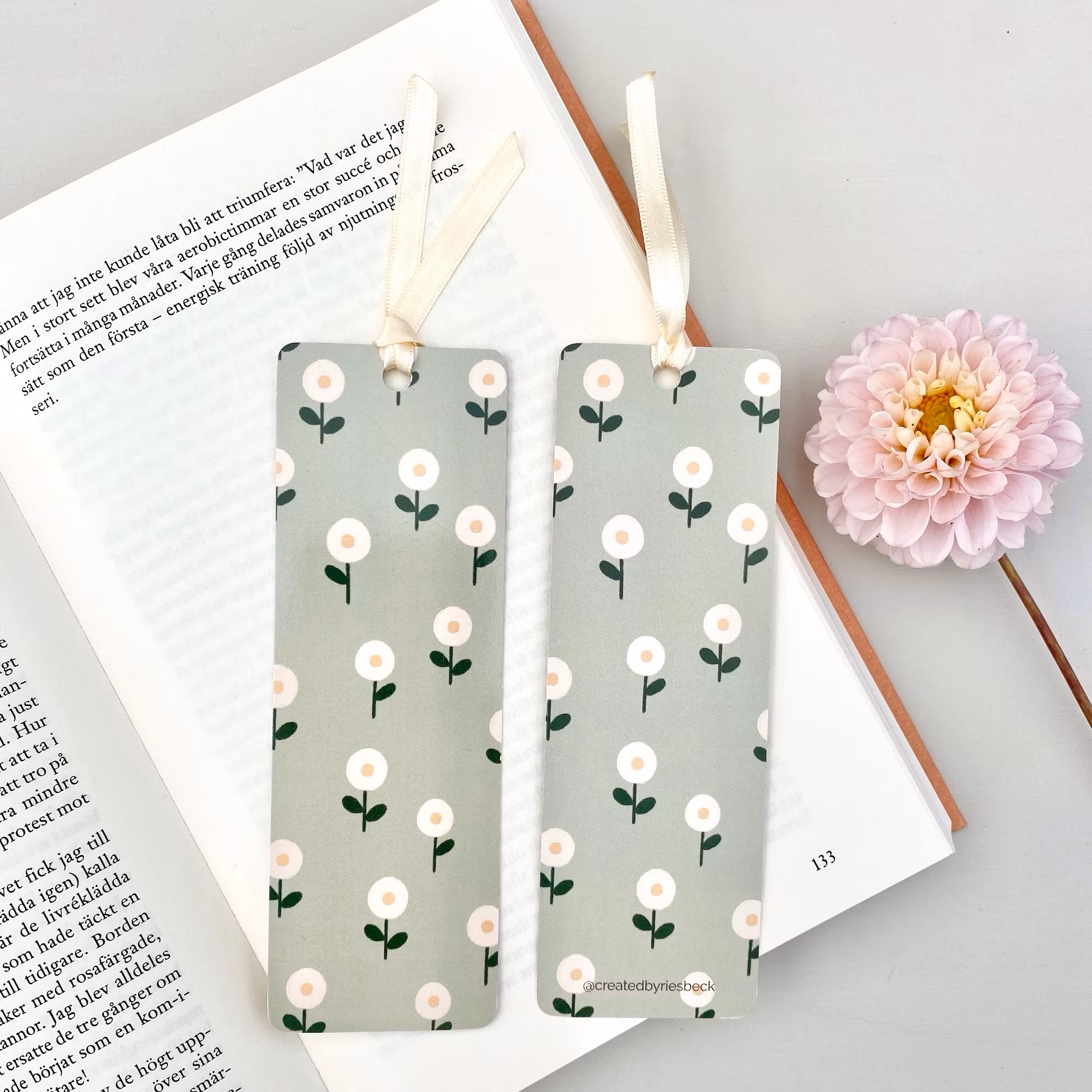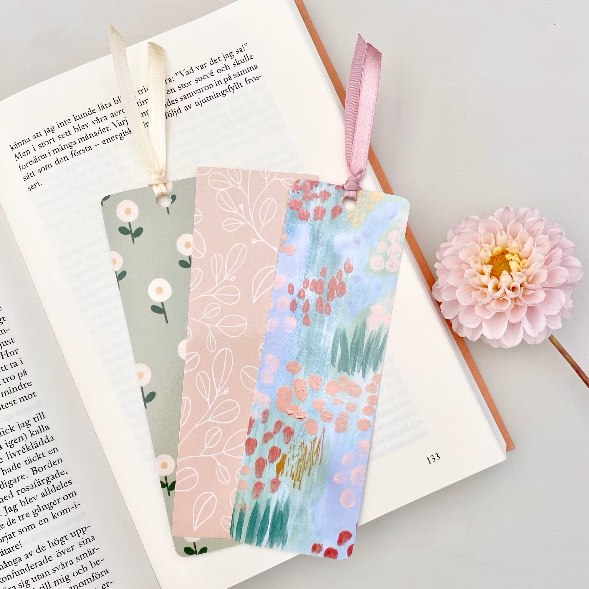Elegant Detalj: Det mjuka satinbandet ger en extra touch av elegans och gör det enkelt att hitta rätt sida igen.