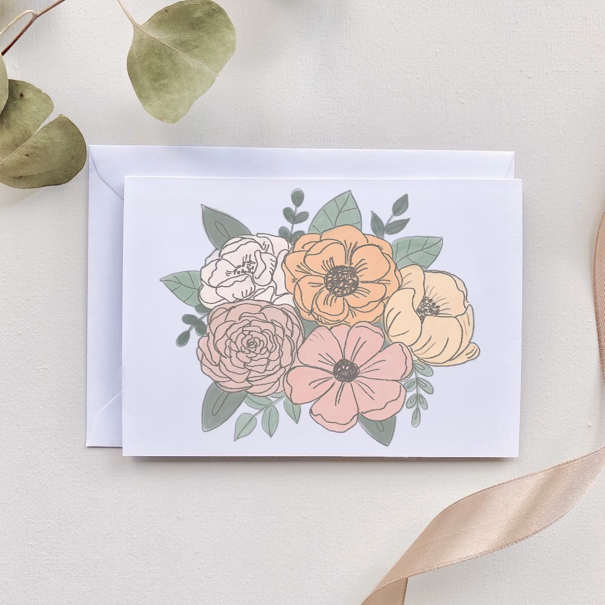 Detta vackra dubbelkort med rosa blommor är illustrerat med färgpennor och har en blank insida, perfekt för att skriva ett personligt meddelande. Kortet är handgjort och utskrivet av oss själva, vilket gör varje exemplar unikt. Det mäter 10x15 cm och levereras tillsammans med ett elegant vitt kuvert.