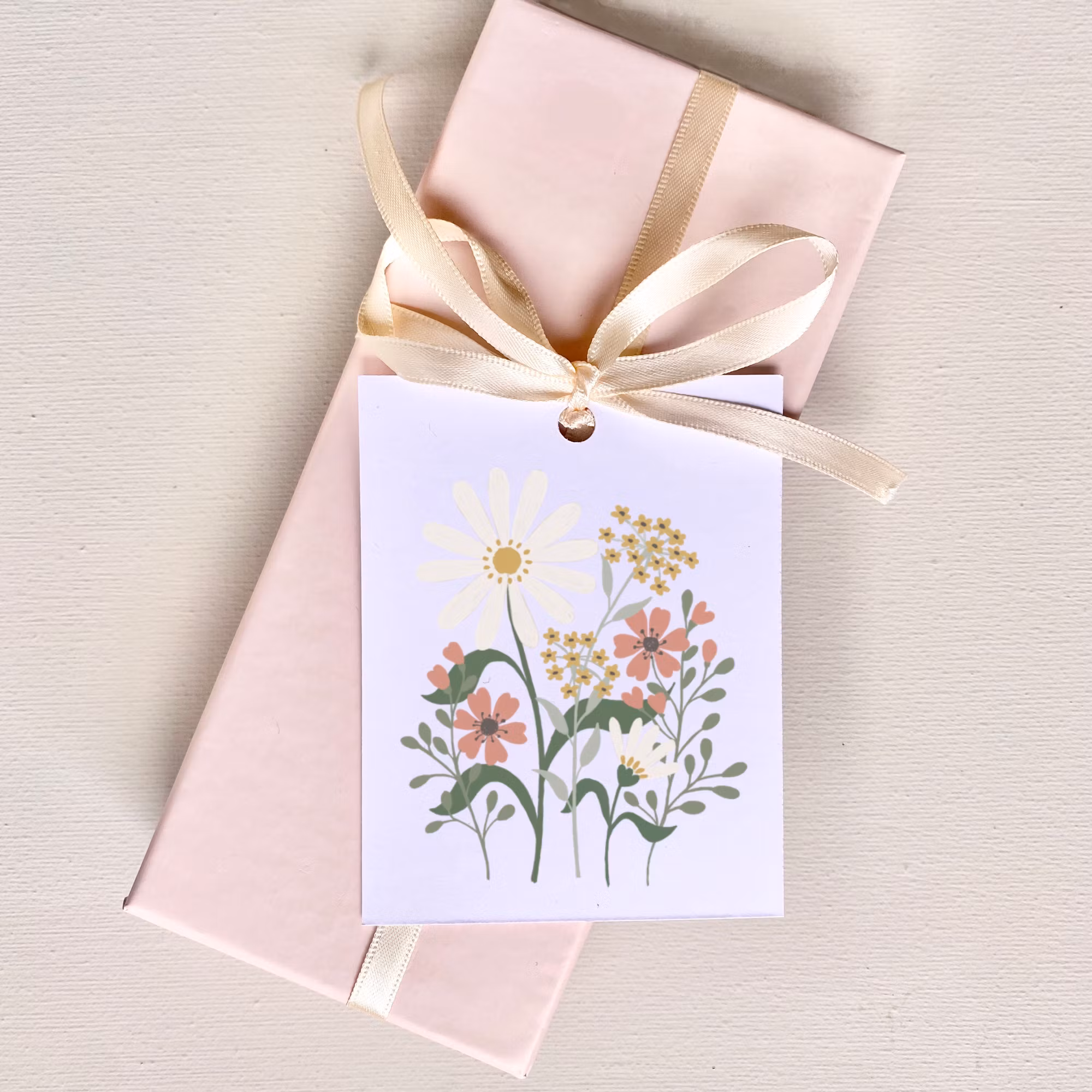 Våra handgjorda lite mindre kort som passar utmärkt att sätta på paketen eller i blombuketten. Illustrerad i färgpennor har en blank baksida för att skriva ett fint meddelande