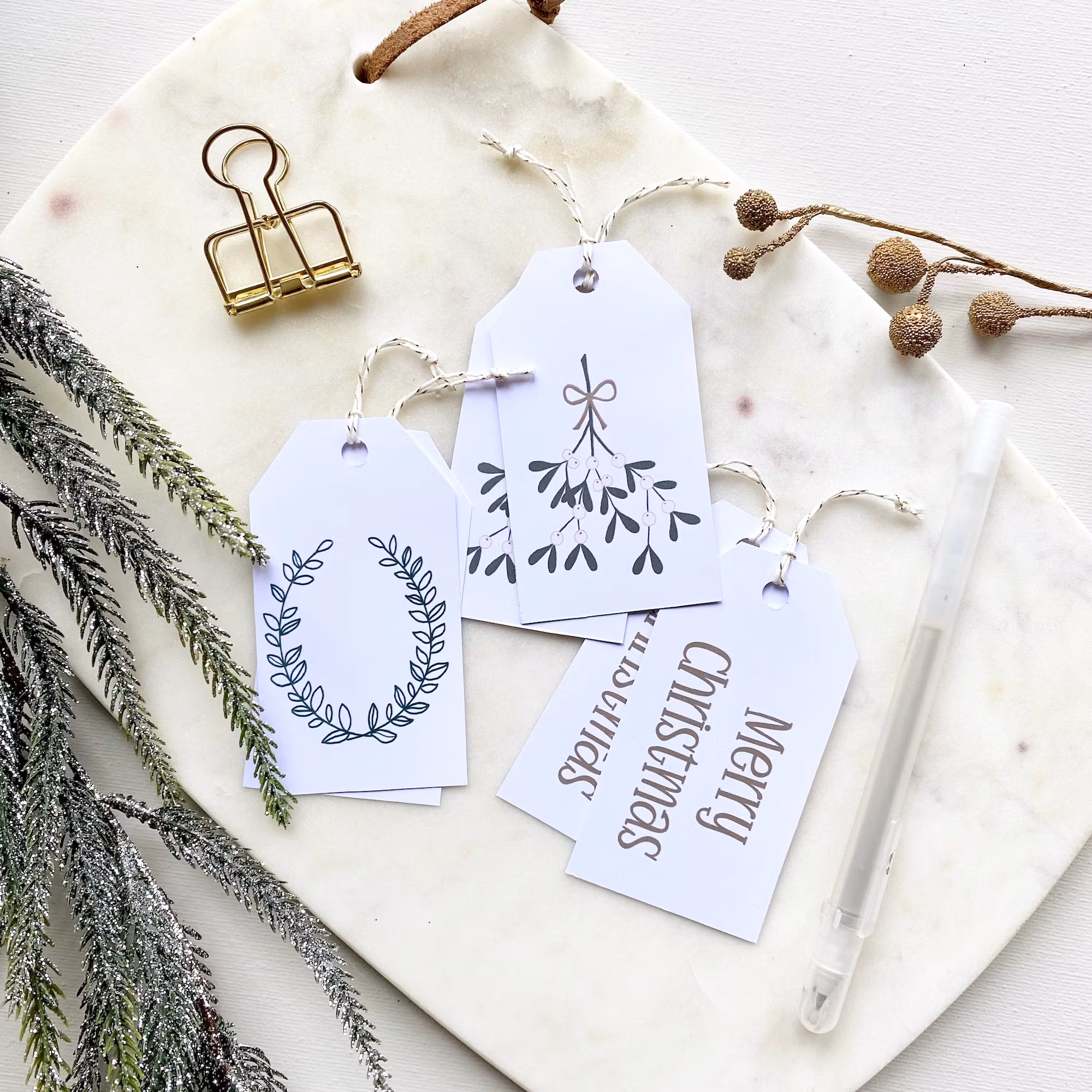 Handgjorda gift tags till dina julklappar i modern stil. Förpackning med 6st 5x9cm