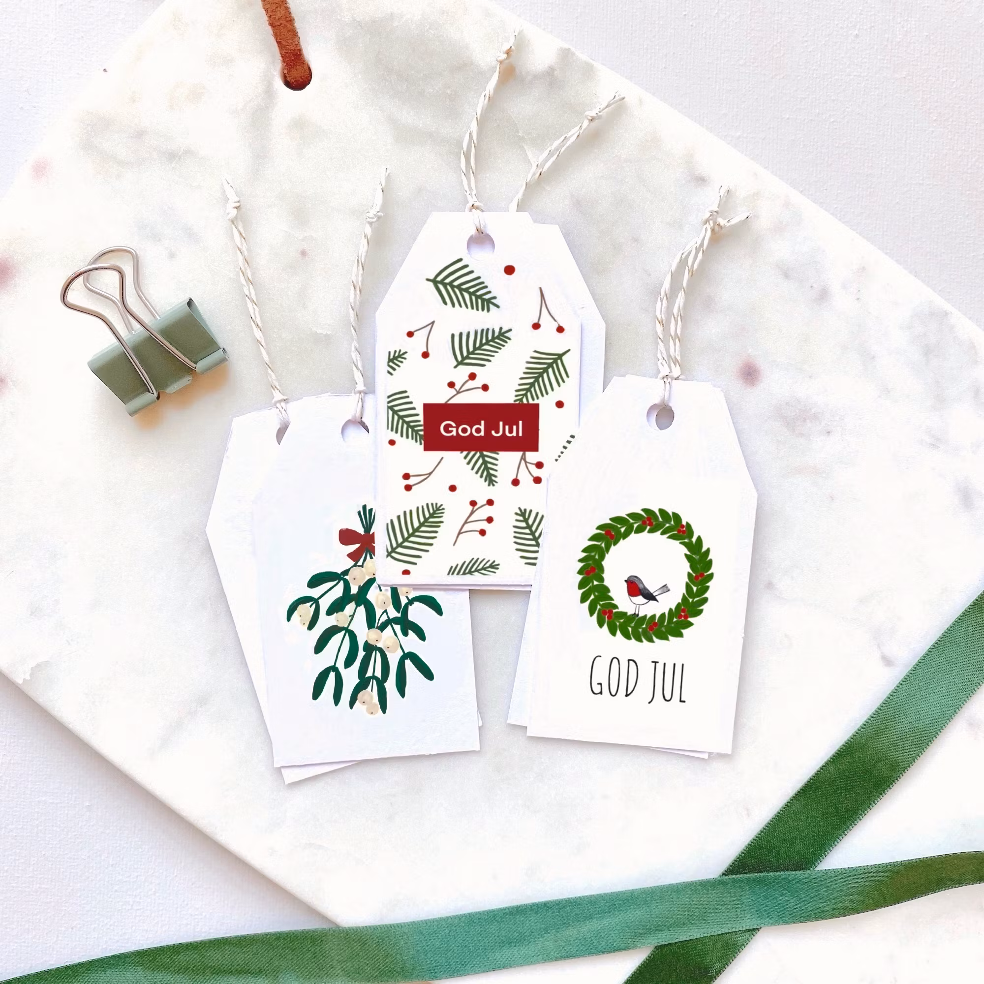Handgjorda gift tags till dina julklappar i modern stil. Förpackning med 6st 5x9cm Utskrivna på 300g papper