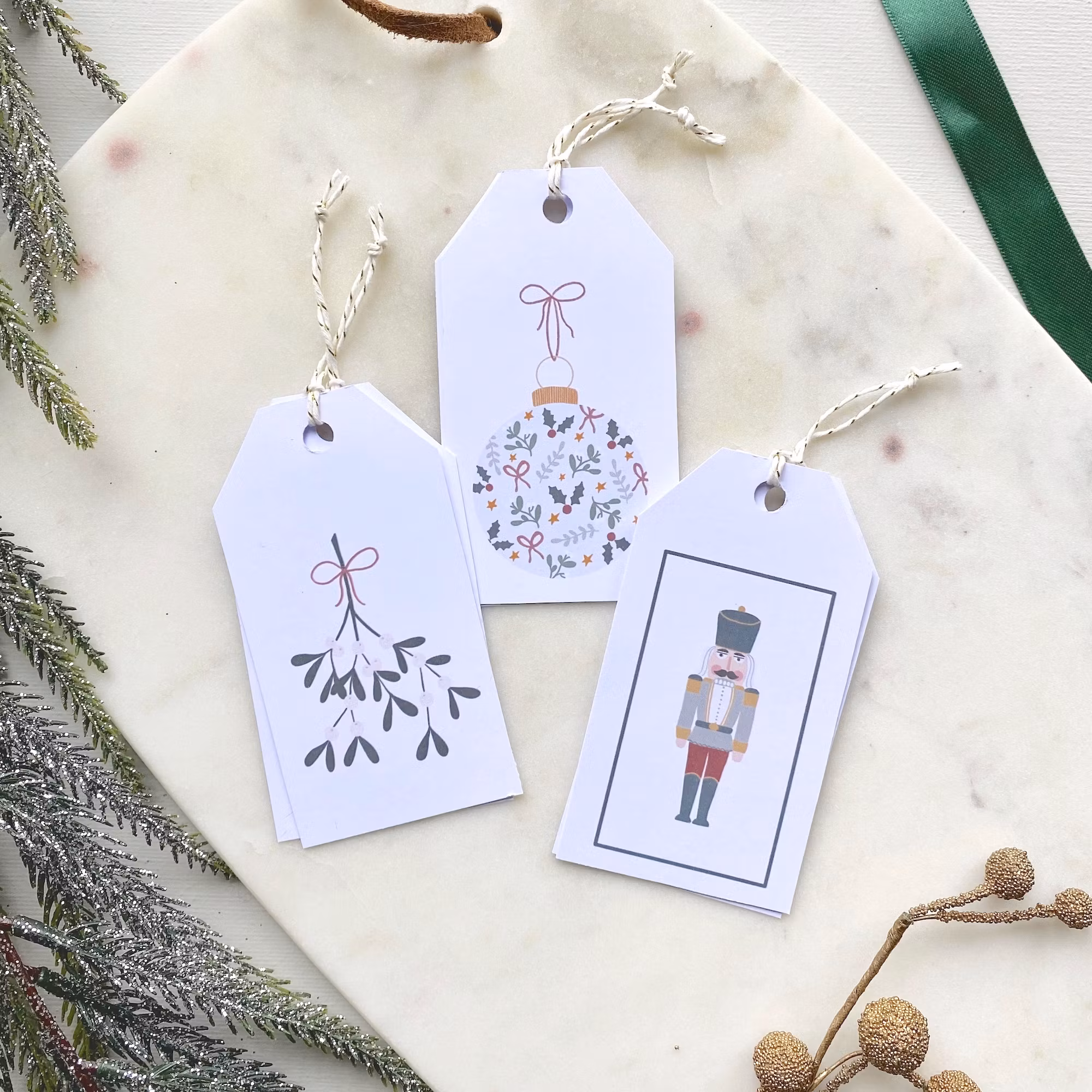 Handgjorda gift tags till dina julklappar i klassisk stil. Förpackning med 6st 5x9cm Utskrivna på 300g papper