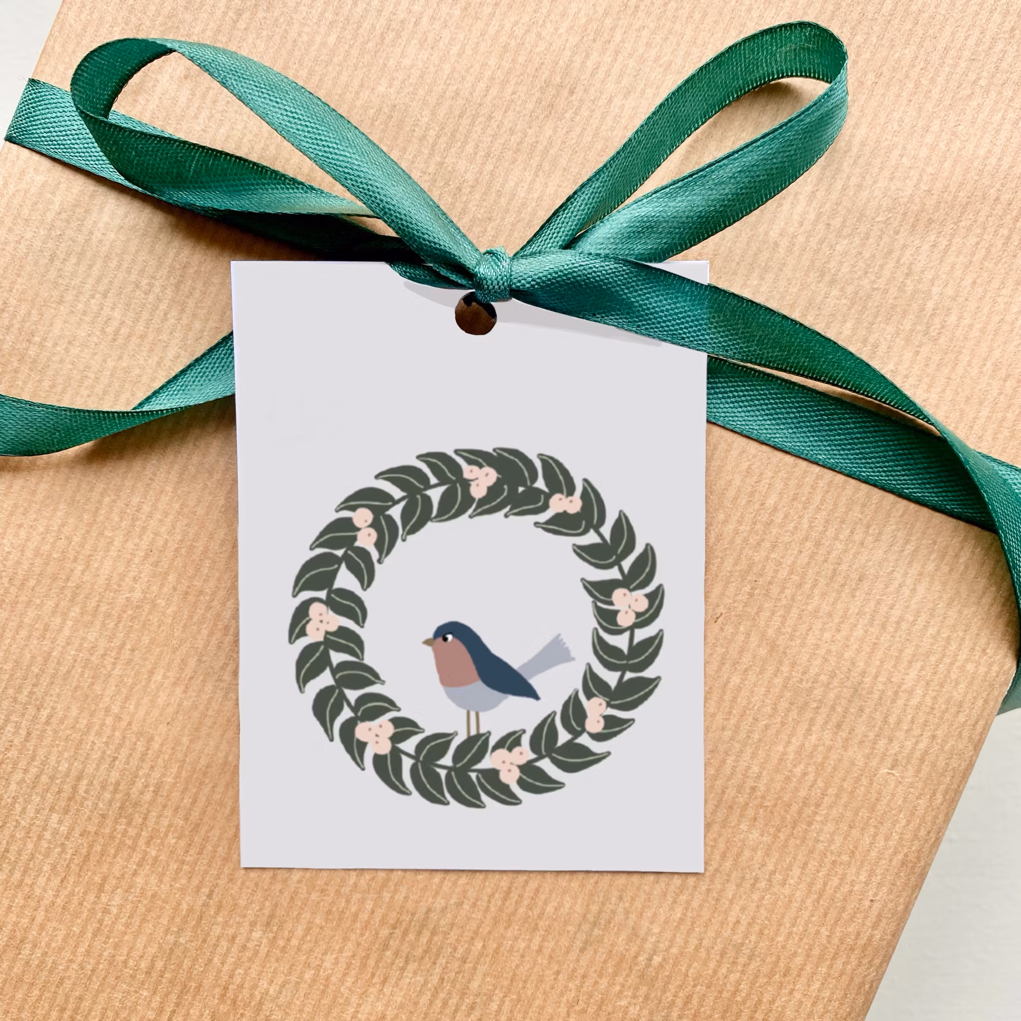 Våra handgjorda lite mindre kort som passar utmärkt att sätta på julklappen eller i blombuketten. Illustrerad i färgpennor har en blank baksida för att skriva ett fint meddelande