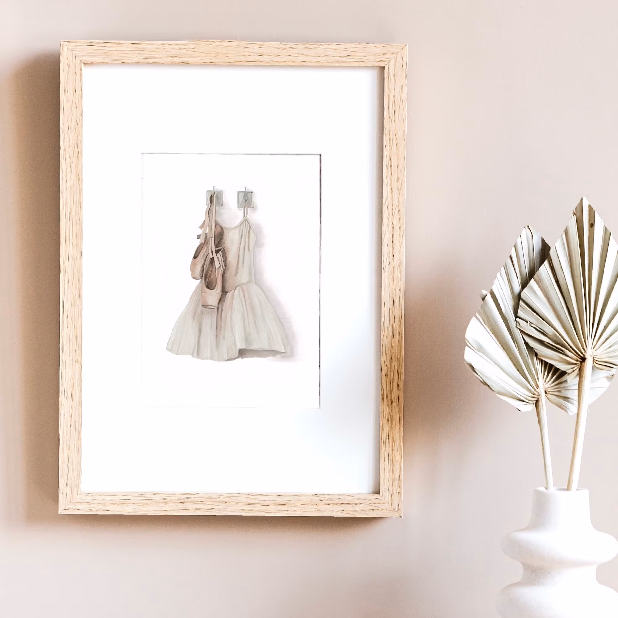 Låt vår Art Print Ballerinaklänning bli en central del av ditt hem. Med sitt unika motiv illustrerat i färgpennor och utskrivet på krispigt vitt satin 300g papper, är det här konstverket en perfekt detalj för att lyfta vilken miljö som helst.