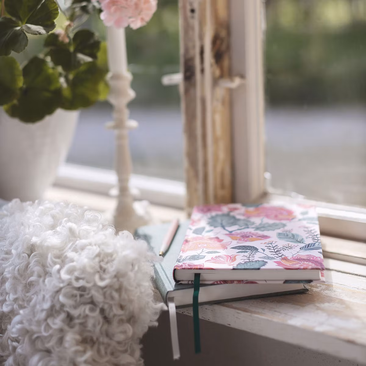Blanka sidor med ett fint sidenband, perfekt att använda som skrivbok eller skissbok för att få ner sina tankar.