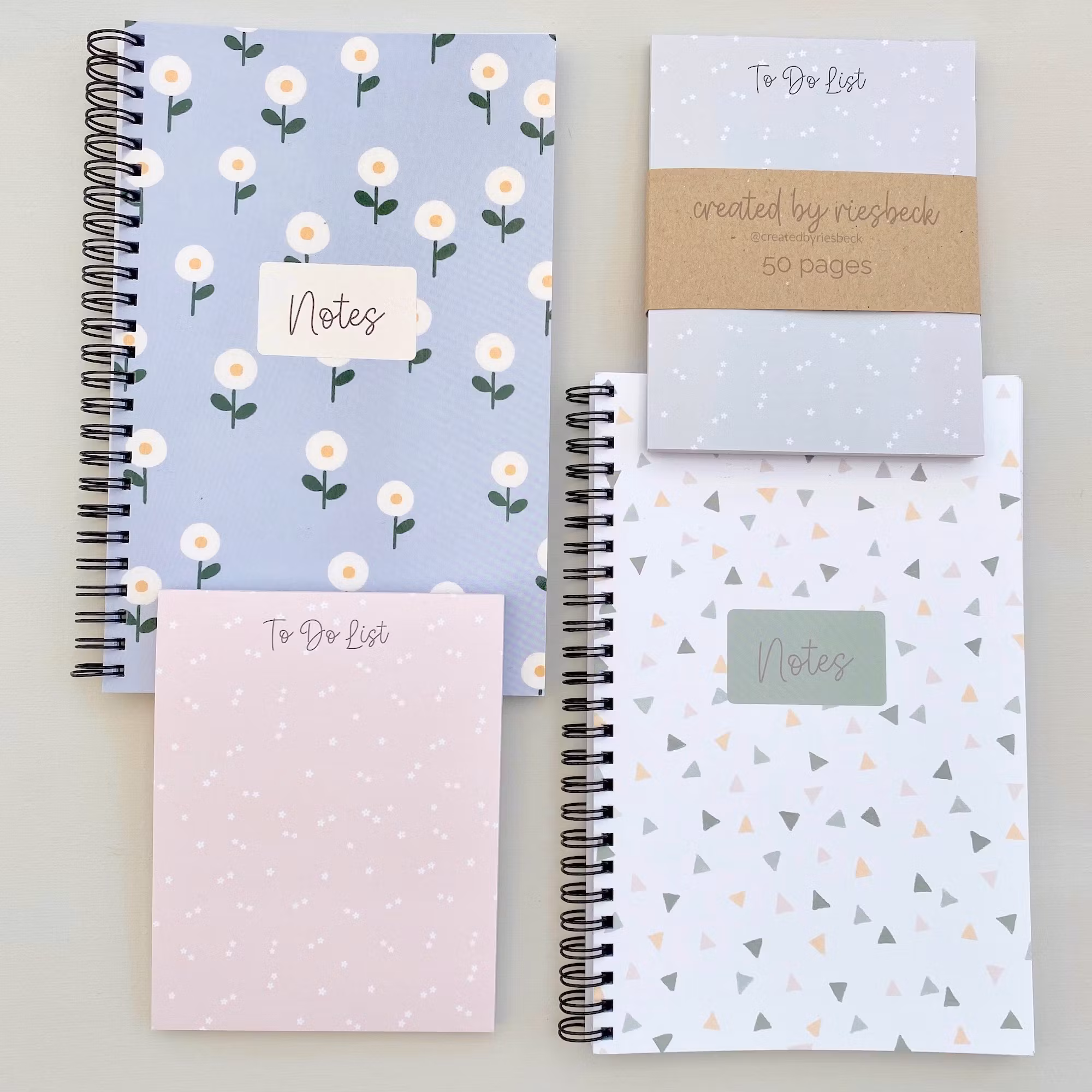 UTGÅR!! En skrivbok i A5 format med illustrerat motiv i färgpennor i mönstret Terrazzo. Mjuk pärm med glansig fram och baksida, vit på insidan och 80 linjerade